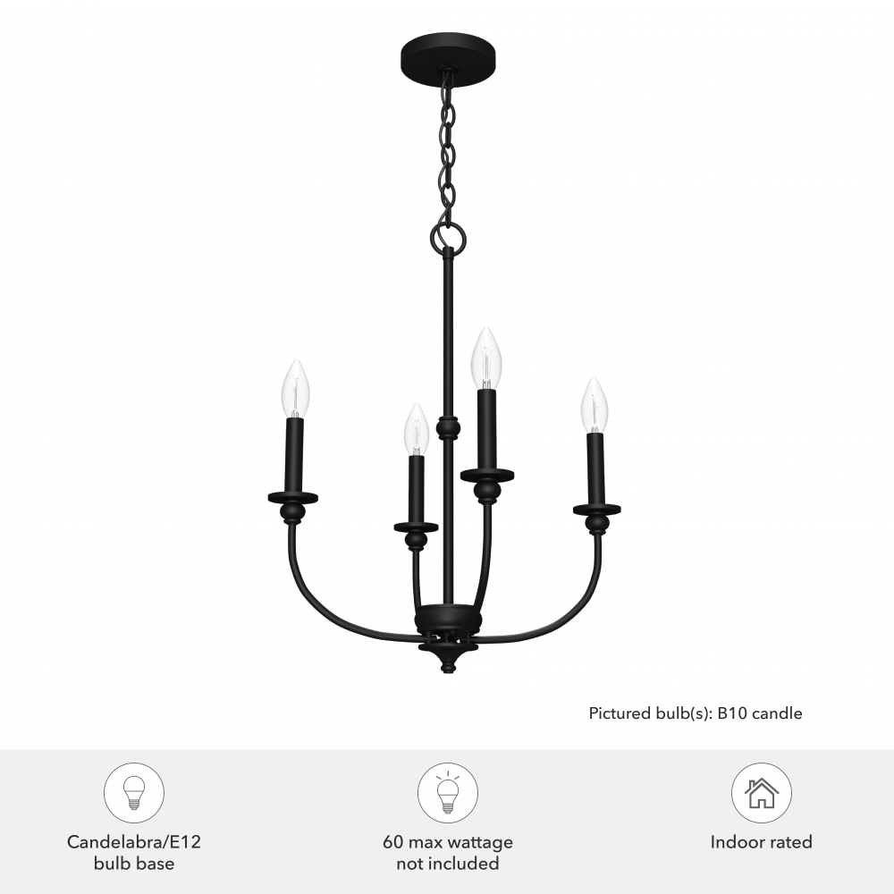 Hunter Southcrest Matte Black 4 Light Mini Chandelier Ceiling Light Fixture