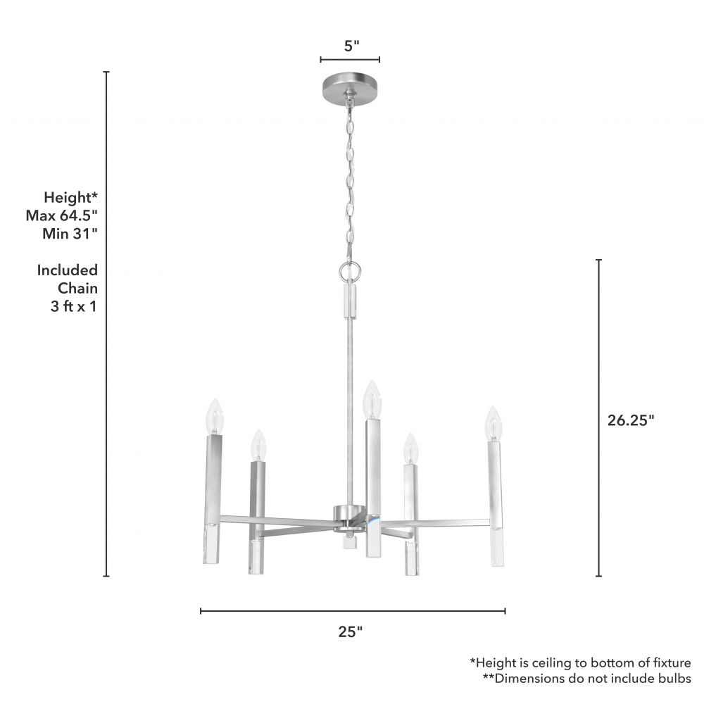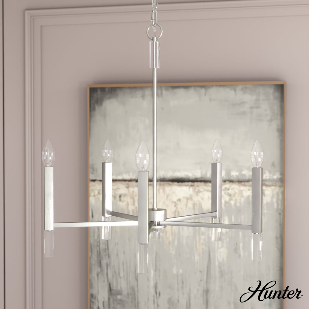 Hunter Sunjai Brushed Nickel 5 Light Medium Chandelier Ceiling Light Fixture