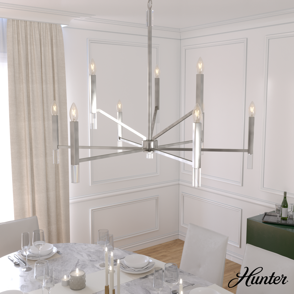 Hunter 19520 - Hunter Sunjai Brushed Nickel 9 Light Extra Large Chandelier Ceiling Light Fixture