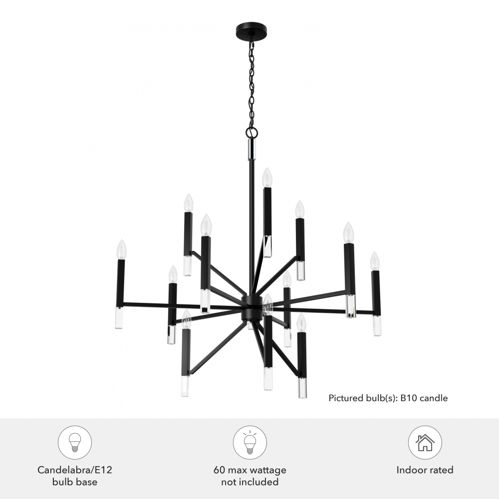 Hunter Sunjai Matte Black 12 Light Extra Large Chandelier Ceiling Light Fixture