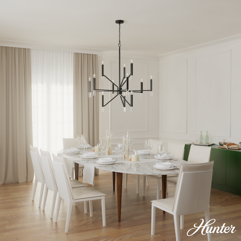 Hunter 45230 - Hunter Sunjai Matte Black 12 Light Extra Large Chandelier Ceiling Light Fixture