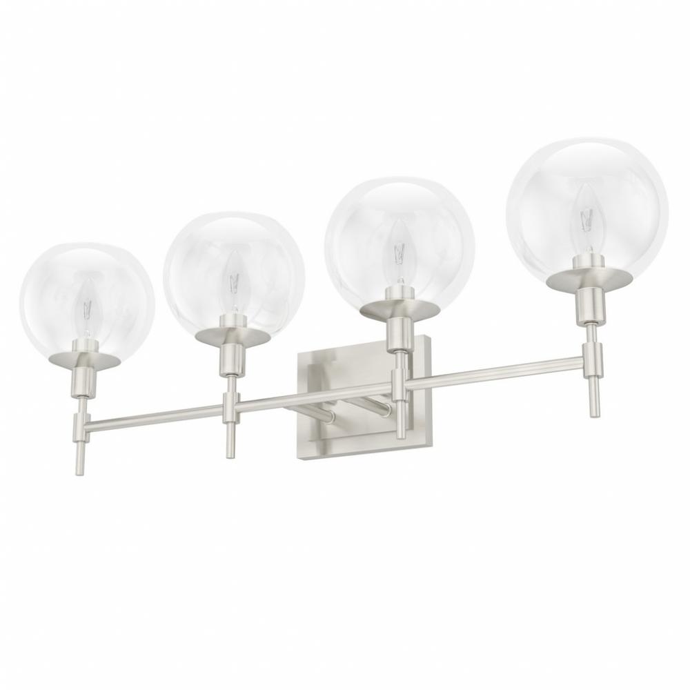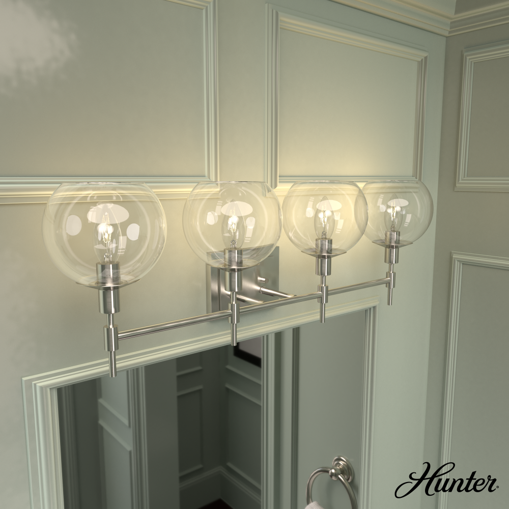 Hunter Xidane Brushed Nickel with Clear Glass 4 Light Bathroom Vanity Wall Light Fixture