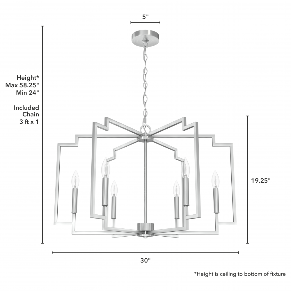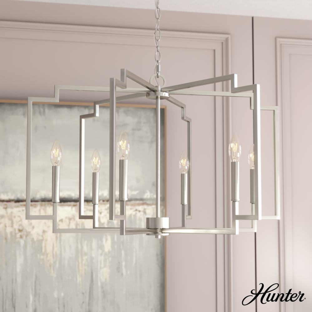 Hunter Zoanne Brushed Nickel 6 Light Medium Chandelier Ceiling Light Fixture