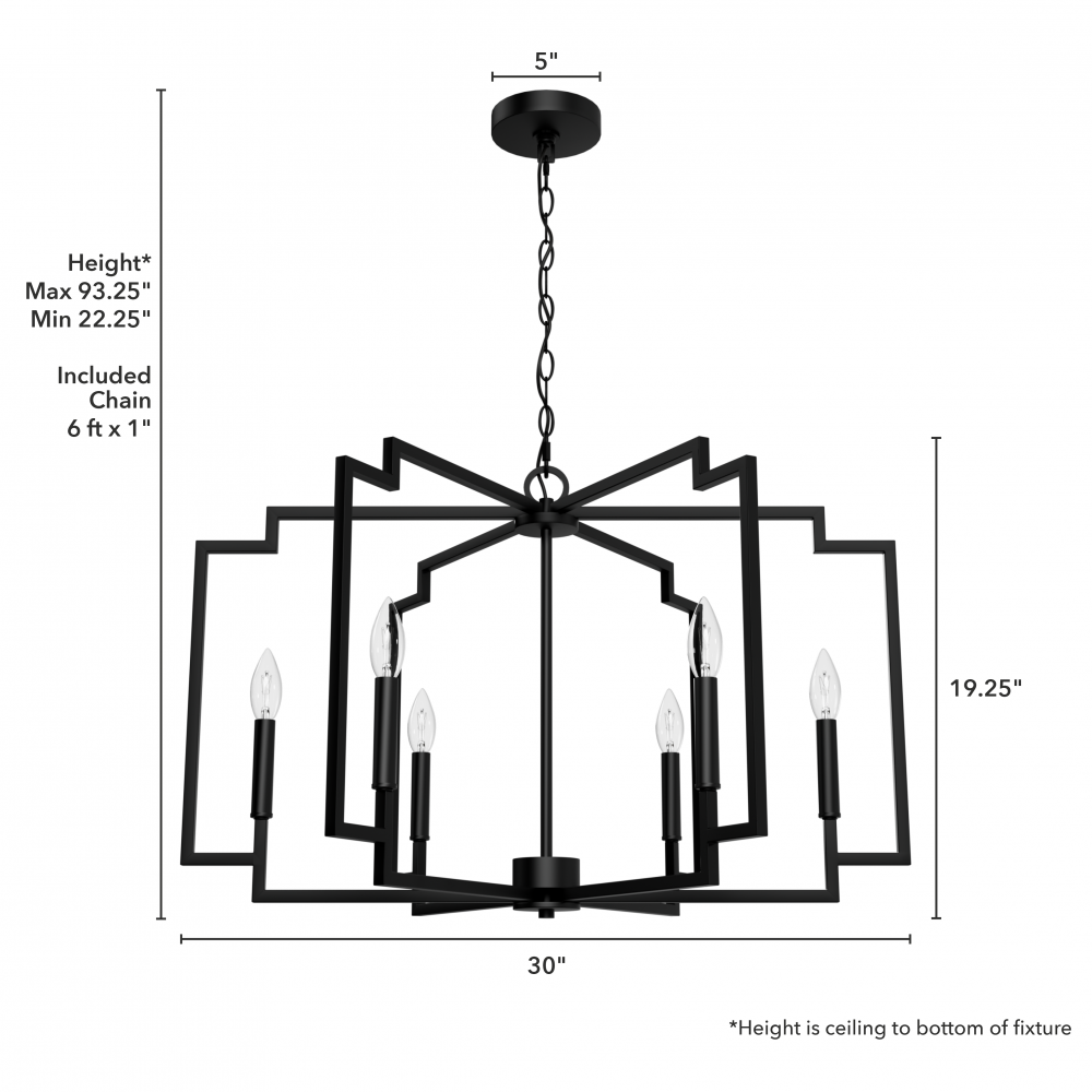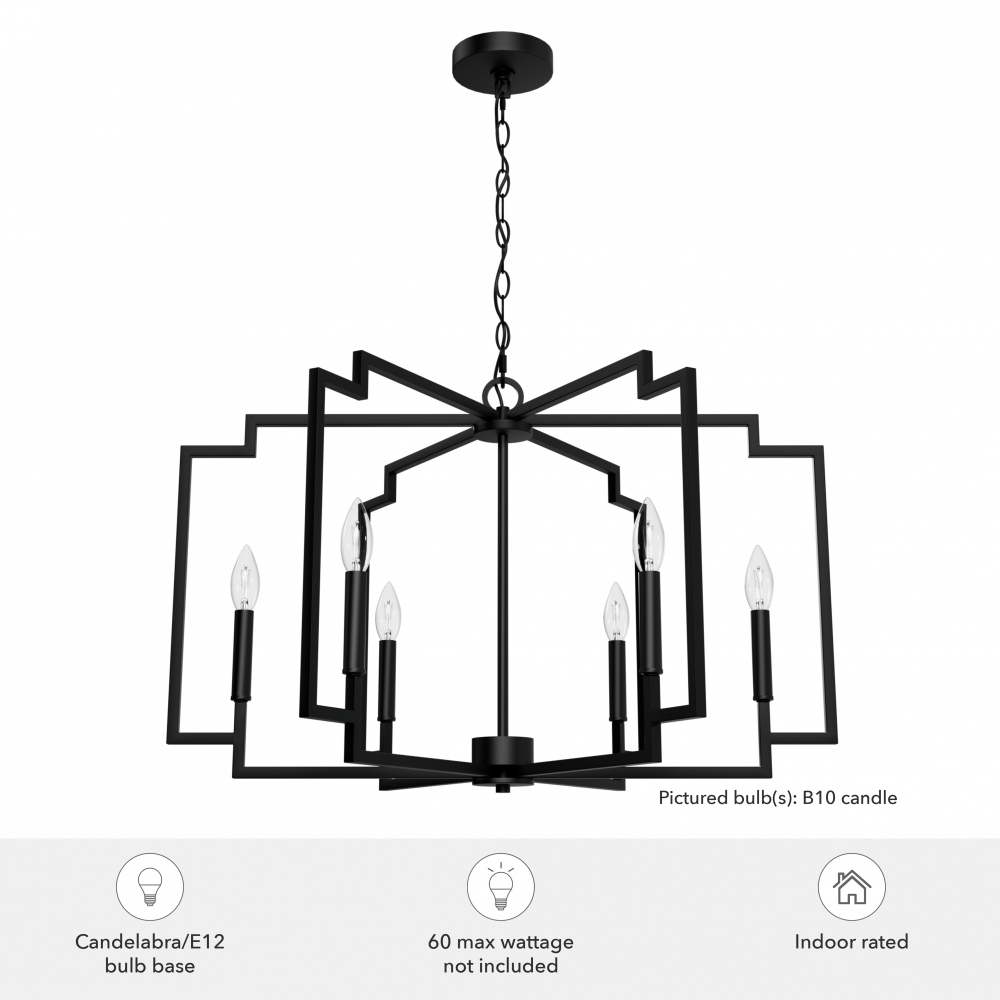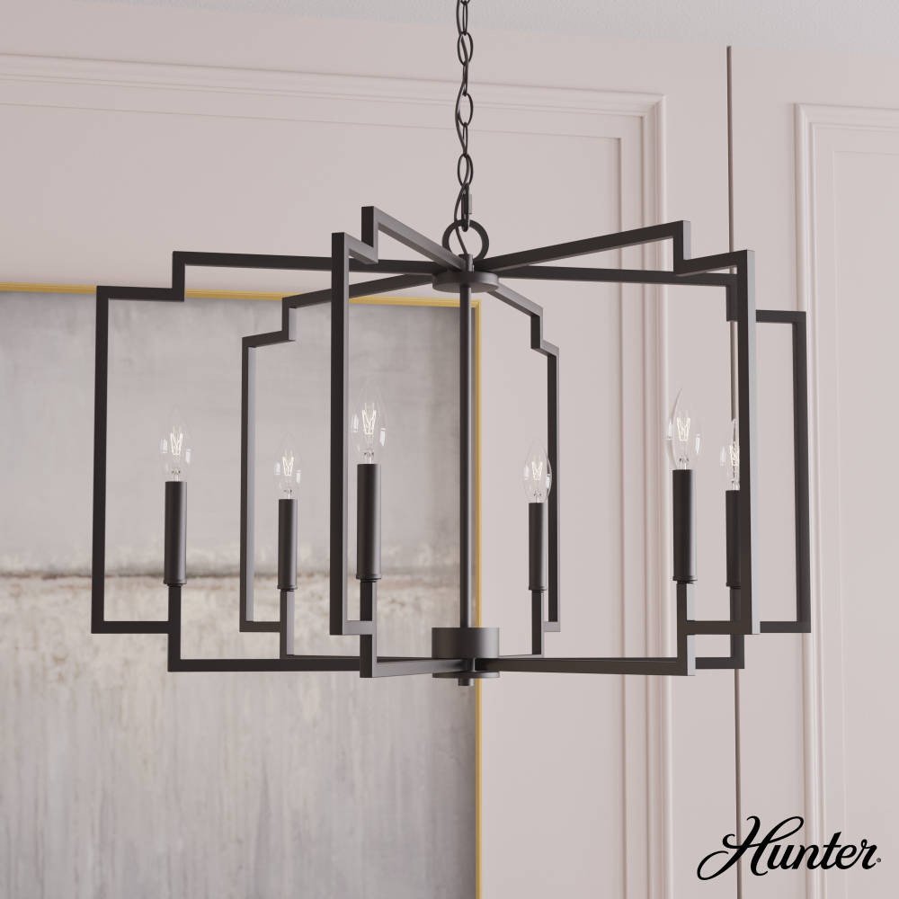 Hunter Zoanne Matte Black 6 Light Large Chandelier Ceiling Light Fixture