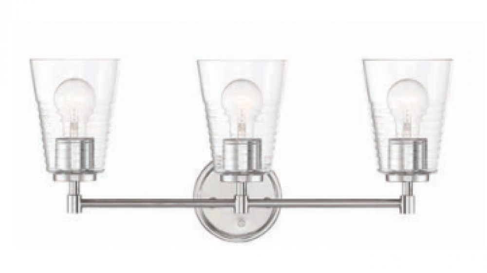 Polished Nickel 3 Light Vanity with clear blown ripple glass is part of the Ingo collection