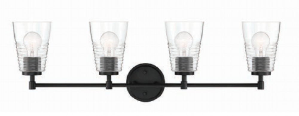 Matte Black 4 Light Vanity with clear blown ripple glass is part of the Ingo collection
