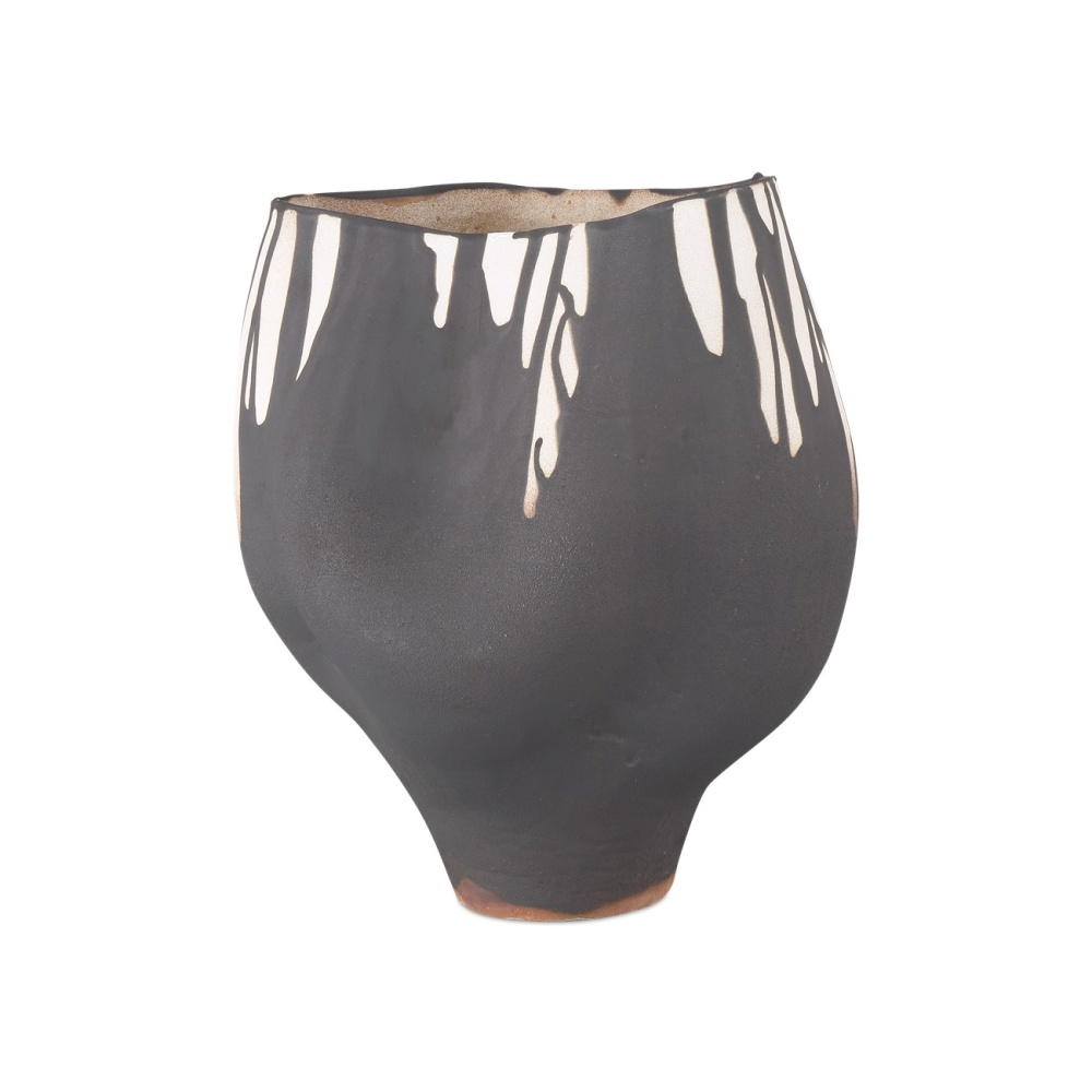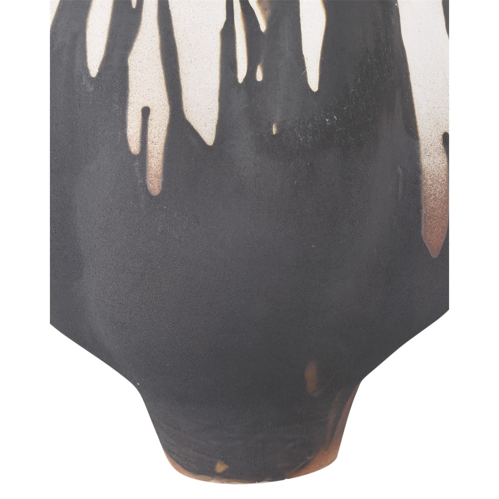 The dripped pattern on the surface of the Inoue Large Vase was inspired by the art of Imperial Japan, particularly the rusticity of Zen ideals that arose during the Kamakura period. Made of porcelain, the black and off-white vessel is subtly rough to the touch and has a matte appearance. The gallery-worthy vase is hand-thrown and hand-decorated so the patterns will vary slightly.