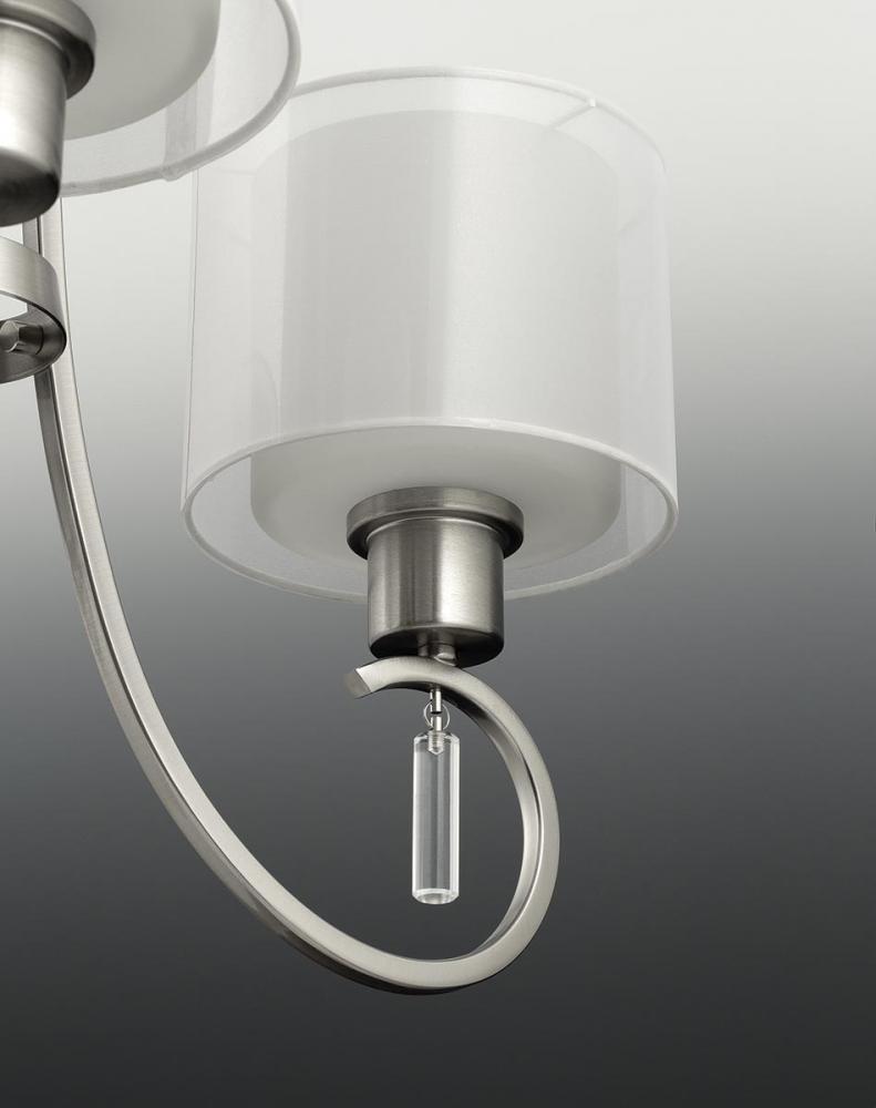 Antique Bronze finish.;Unique translucent sheer mylar shades.;Inner glass globes provide inviting illumination.;Elegant and dreamy rich, layering effect.;Includes one 6", four 12" stems and 6 links of chain.