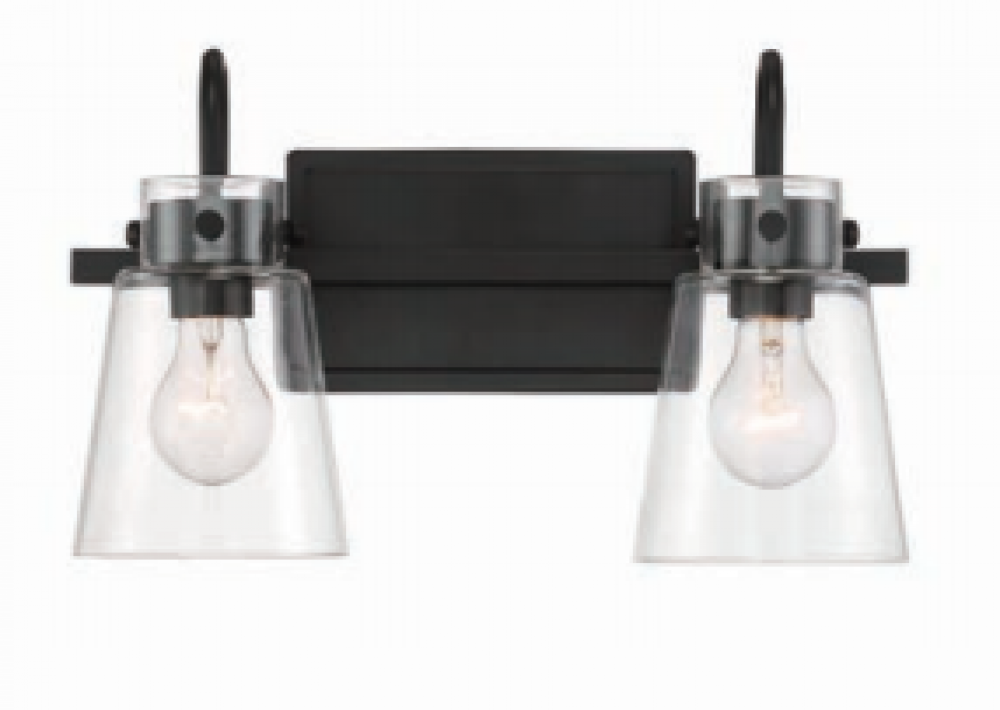 Matte Black 2 Light Vanity with clear glass shade is part of the Inwood collection