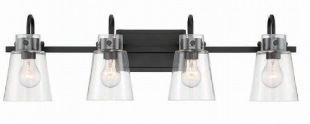 Matte Black 4 Light Vanity with clear glass shade is part of the Inwood collection