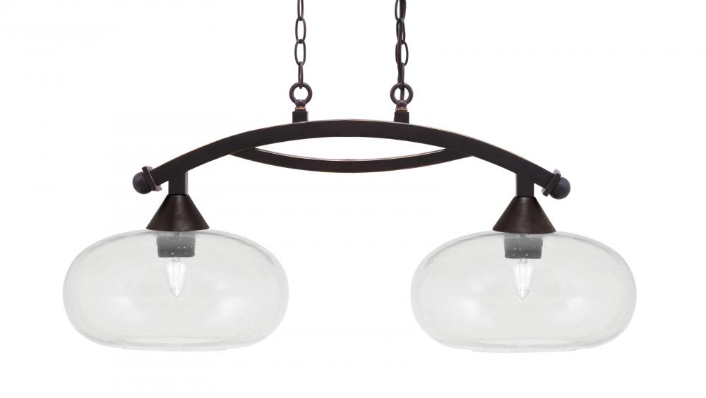 Toltec Lighting 872-DG-206 Bow 2 Light Island Light, Dark Granite Finish, 13 Clear Bubble Glass