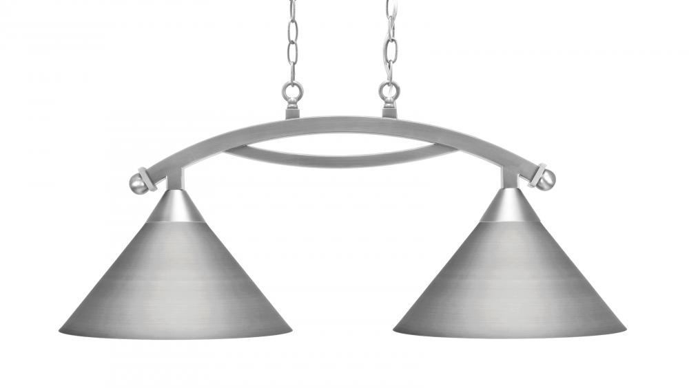 Toltec Lighting 872-BN-420-BN Bow 2 Light Island Light, Brushed Nickel Finish, 14 Brushed Nickel Cone Metal Shades