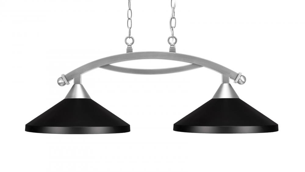 Toltec Lighting 872-BN-424-MB Bow 2 Light Island Light, Brushed Nickel Finish, 14 Matte Black Cone Metal Shades