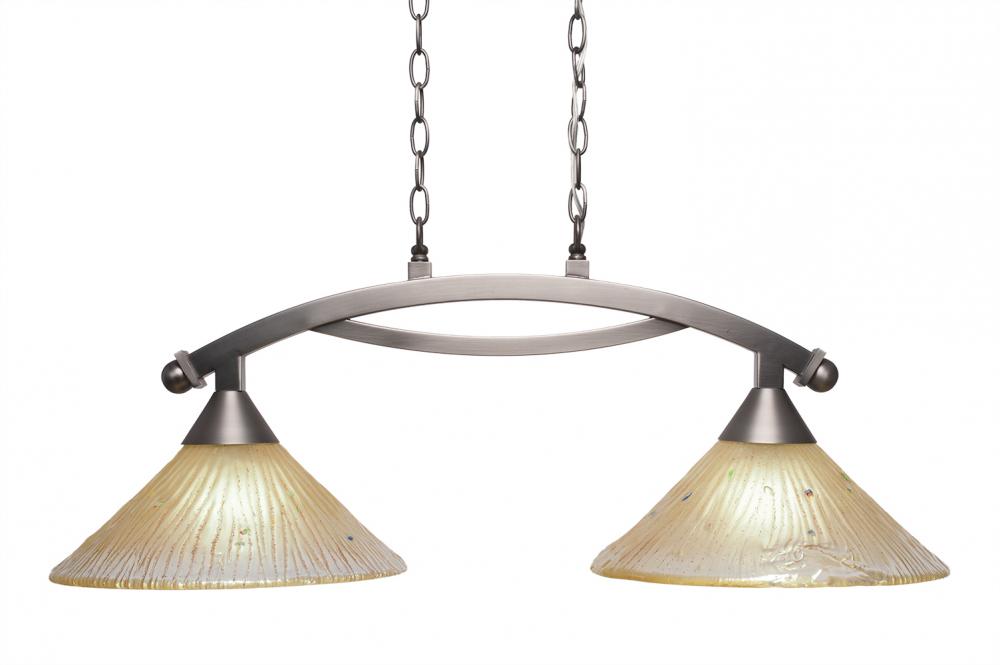 Toltec Lighting 872-BN-700 Bow 2 Light Island Light Shown In Brushed Nickel Finish With 12 Amber Crystal Glass