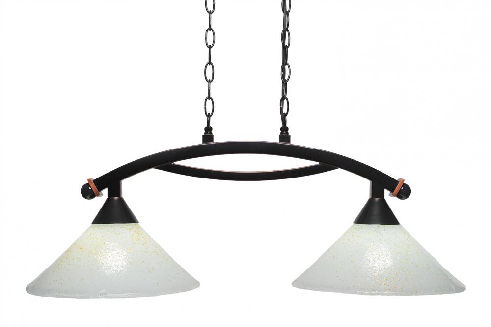 Toltec Lighting 872-BC-702 Bow 2 Light Island Light Shown In Black Copper Finish With 12 Gold Ice Glass