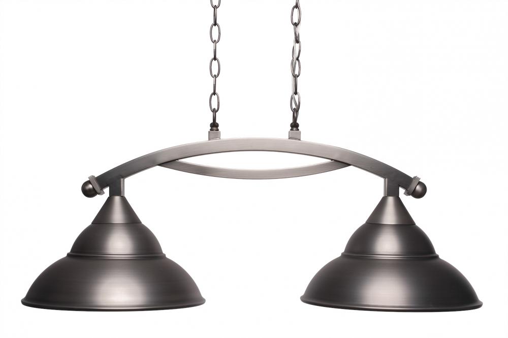 Toltec Lighting 872-BN-428-BN Bow 2 Light Island Light Shown In Brushed Nickel Finish With 13 Brushed Nickel Double Bubble Metal Shades