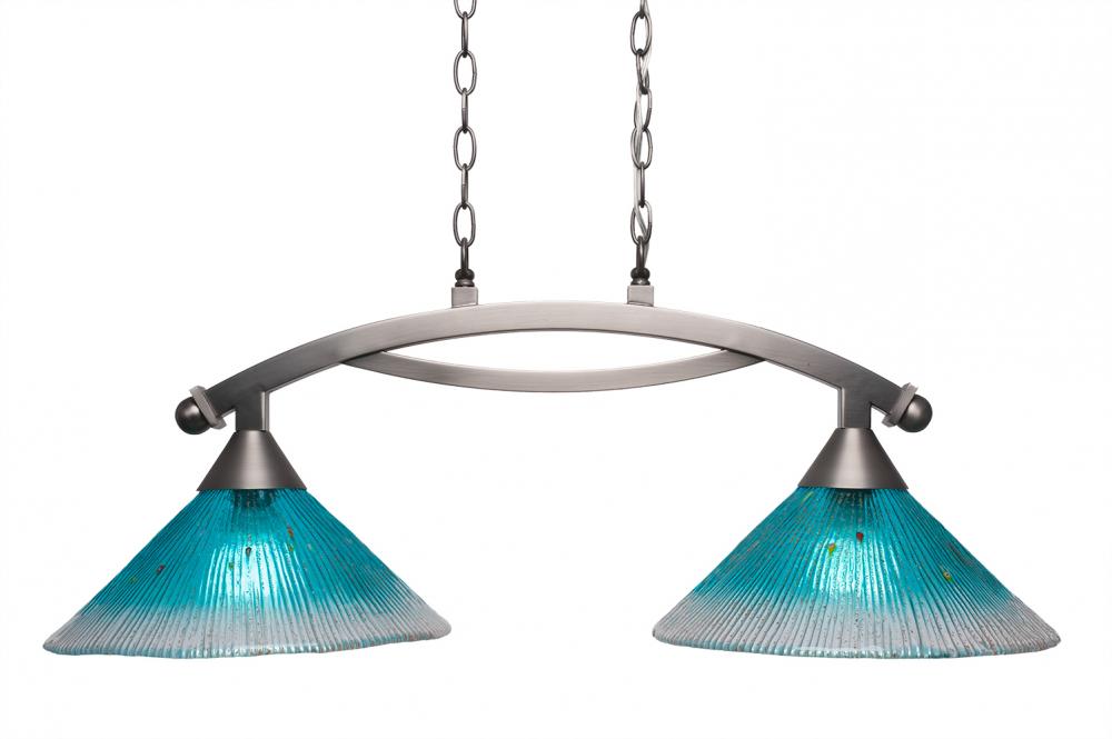 Toltec Lighting 872-BN-448 Bow 2 Light Island Light Shown In Brushed Nickel Finish With 12 Teal Crystal Glass