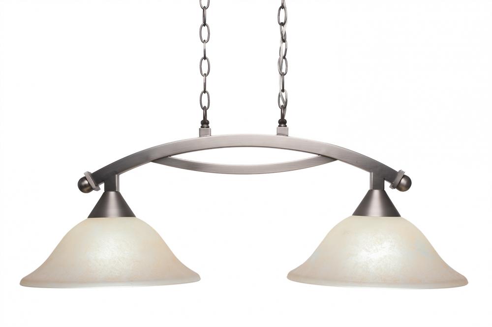 Toltec Lighting 872-BN-523 Bow 2 Light Island Light Shown In Brushed Nickel Finish With 12 Amber Marble Glass
