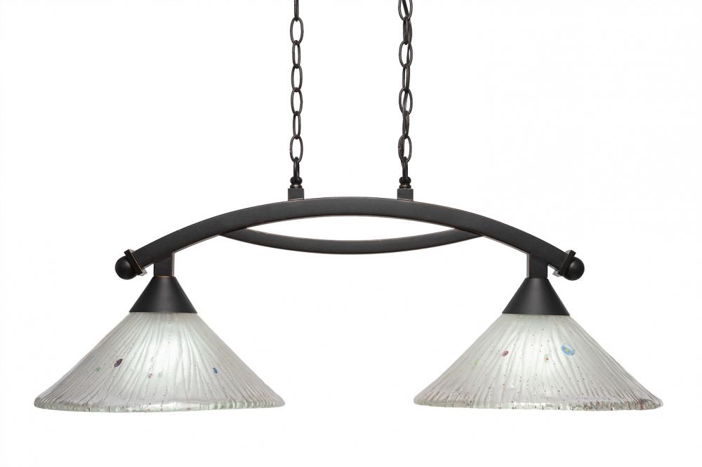 Toltec Lighting 872-DG-701 Bow 2 Light Island Light Shown In Dark Granite Finish With 12 Frosted Crystal Glass