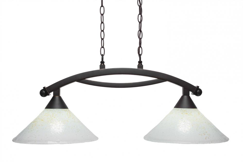 Toltec Lighting 872-DG-702 Bow 2 Light Island Light Shown In Dark Granite Finish With 12 Gold Ice Glass