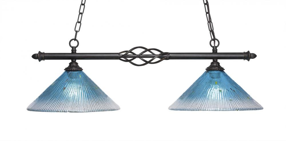 Toltec Lighting 862-DG-448 Elegant? 2 Light Island Light Shown In Dark Granite Finish With 12 Teal Crystal Glass