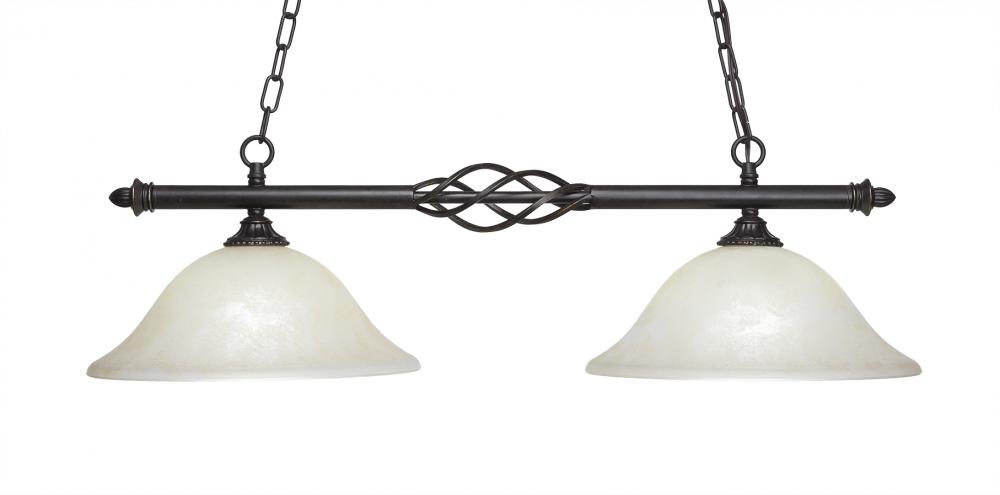 Toltec Lighting 862-DG-523 Elegant? 2 Light Island Light Shown In Dark Granite Finish With 12 Amber Marble Glass