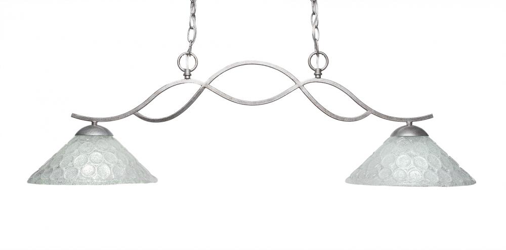 Toltec Lighting 342-AS-441 Revo 2 Light Island Light Shown In Aged Silver Finish With 12 Italian Bubble Glass