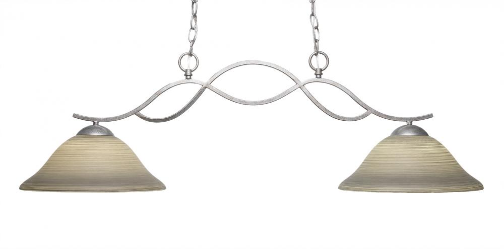 Toltec Lighting 342-AS-604 Revo 2 Light Island Light Shown In Aged Silver Finish With 12 Gray Linen Glass