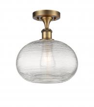 Ithaca - 1 Light - 10 inch - Brushed Satin Nickel - Clear Ithaca Shade - Semi-Flush Mount