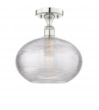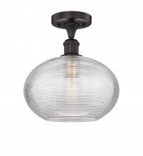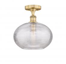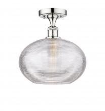 Ithaca - 1 Light - 12 inch - Brushed Satin Nickel - Clear Ithaca Shade - Semi-Flush Mount