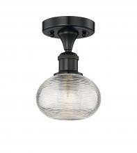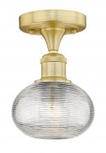 Ithaca - 1 Light - 6 inch - Brushed Satin Nickel - Clear Ithaca Shade - Semi-Flush Mount