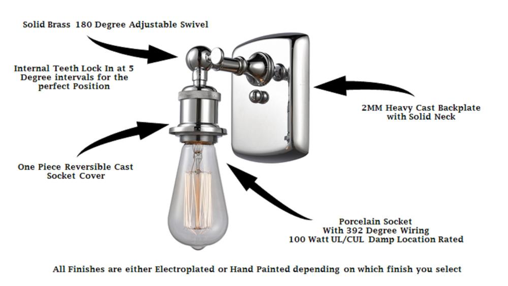 Solid Brass 180 Degree Adjustable Swivels. The opening at the bottom of the glass is 3".