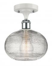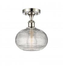 Ithaca - 1 Light - 8 inch - Brushed Satin Nickel - Clear Ithaca Shade - Semi-Flush Mount