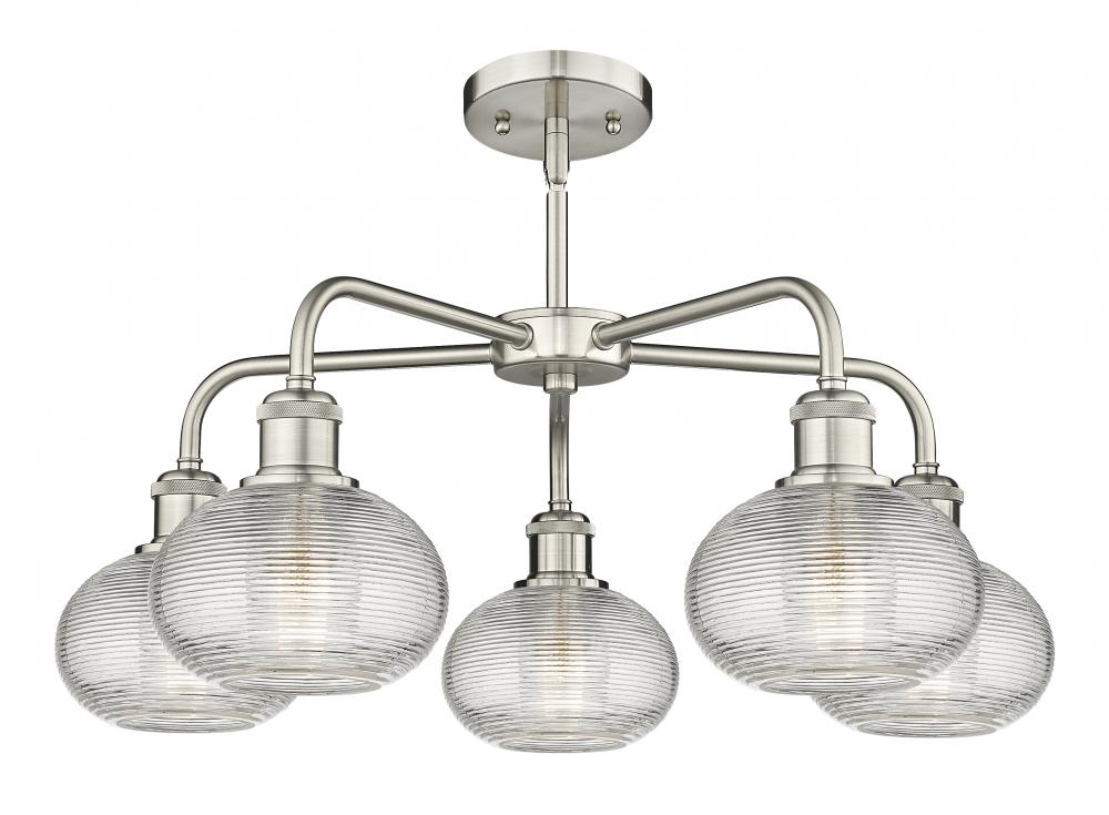 Ithaca - 5 Light - 24 inch - Satin Nickel - Clear Ithaca Shade - Chandelier