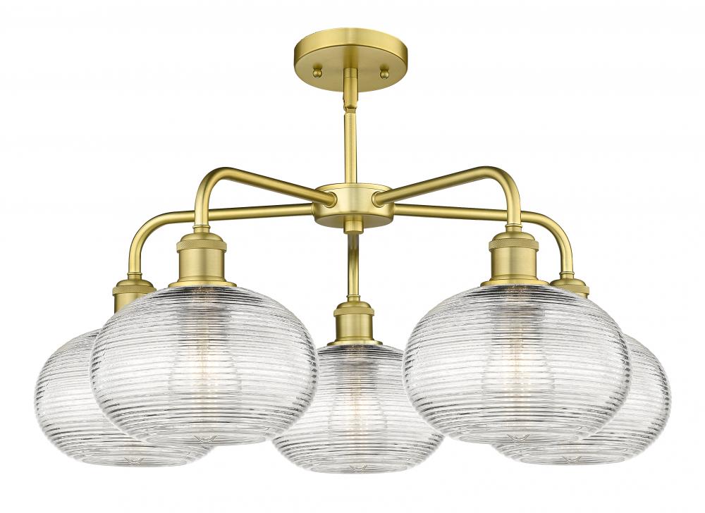 Ithaca - 5 Light - 26 inch - Satin Gold - Clear Ithaca Shade - Chandelier