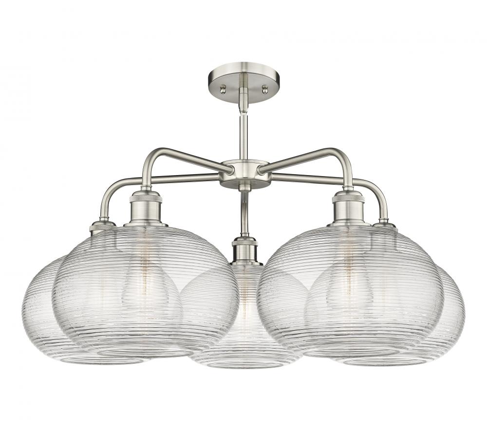 Ithaca - 5 Light - 28 inch - Satin Nickel - Clear Ithaca Shade - Chandelier