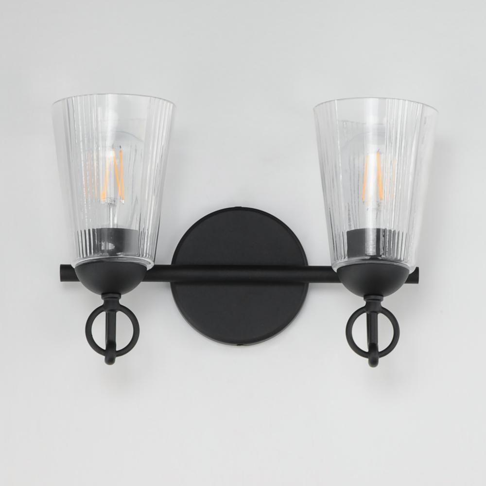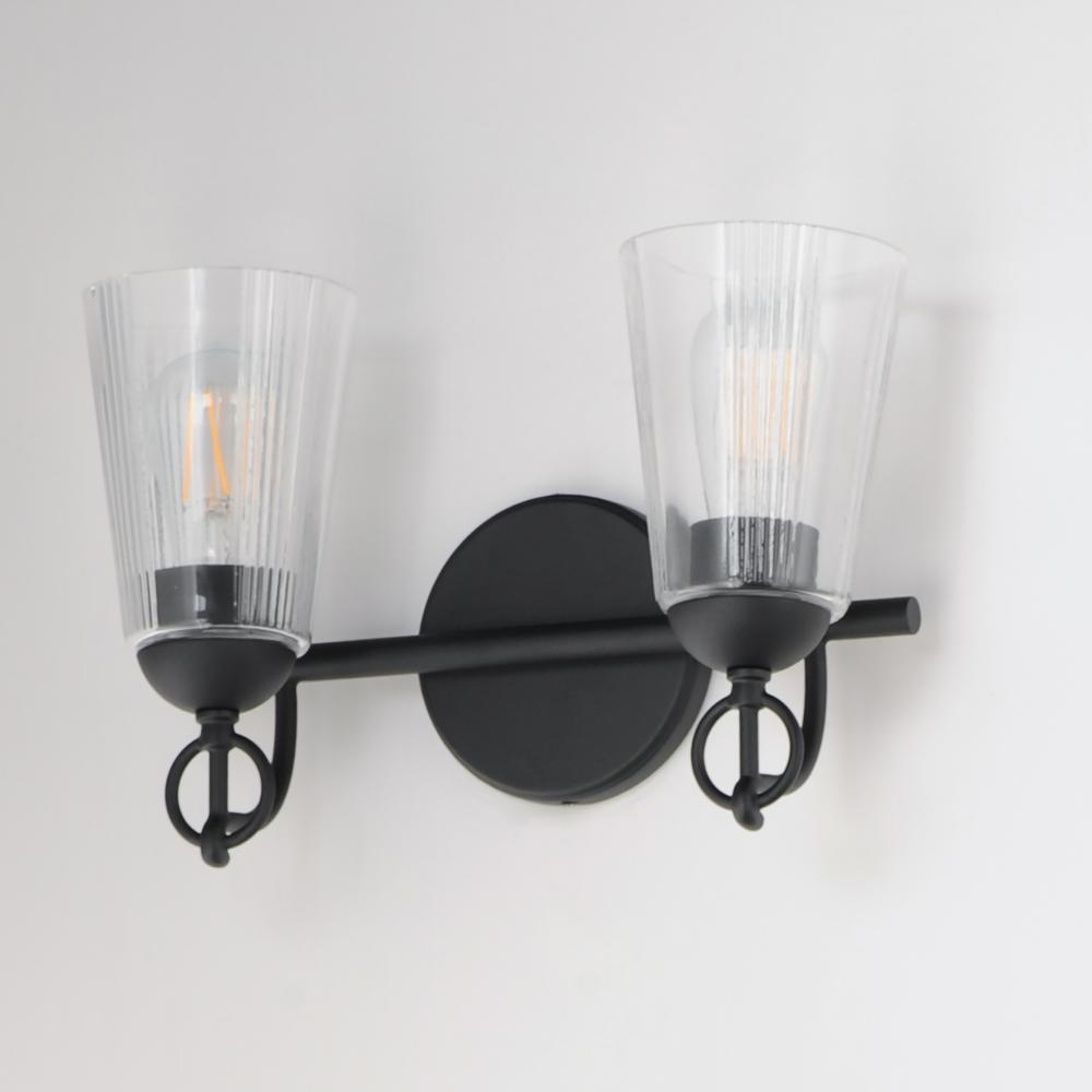Inspired by the rugged charm of the American West, the Jackson Hole collection brings an elevated rustic sensibility to bath and vanity spaces. Tapered clear glass shades, subtly fluted with a vertical stripe detail, soften and refract light while reducing