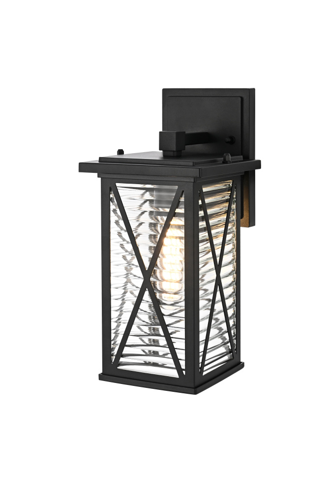 This outdoor wall light blends classic lantern styling with modern craftsmanship, featuring a rectangular metal frame, fluted glass panels, and crisscross detailing. The clear fluted glass creates a rippled effect, diffusing the light for a balanced glow while maintaining brightness. Crafted from iron and aluminum, the sturdy black-finished frame ensures long-term durability in outdoor conditions. Pre-wired with a 7-inch lead, this wall light is a strong and stylish choice for enhancing outdoor spaces. The open-bottom design allows for quick and hassle-free bulb changes, while the fixture supports a single medium-base E26 bulb (40W max, not included). Dimmable and ETL Wet Rated, this pendant light brings a structured and refined presence to exterior spaces. Built with marine-grade, corrosion-resistant aluminum, this sconce withstands coastal conditions for long-lasting durability.