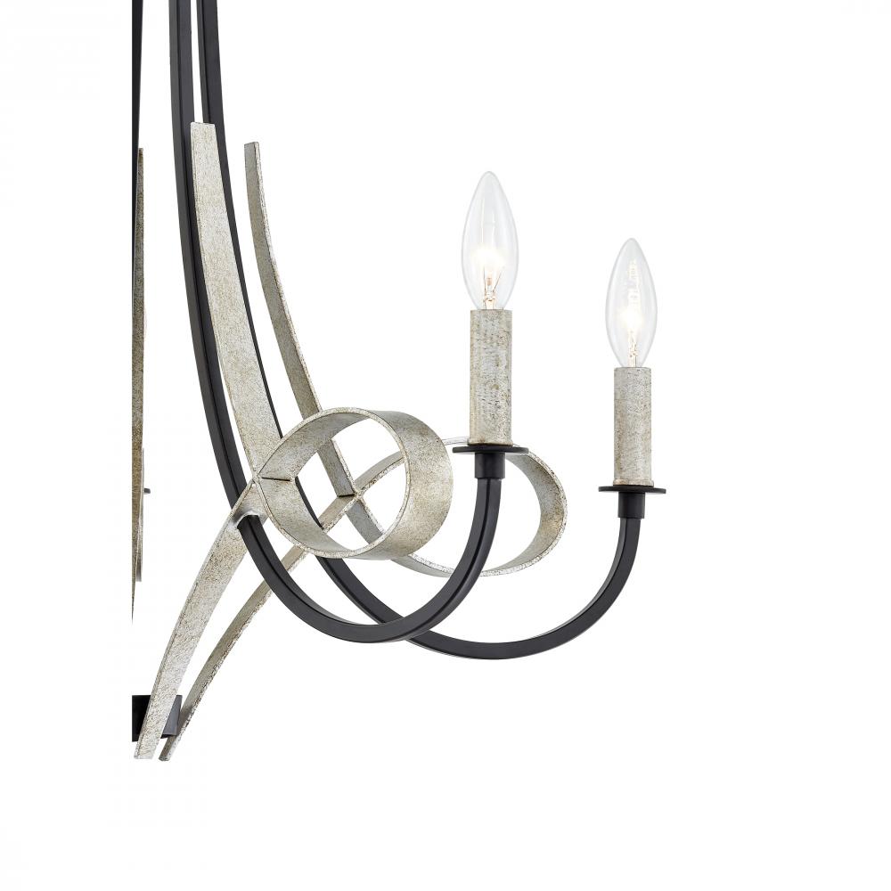 The Jada is a traditional style collection with a modern twist. This fixture is finished in Matte Black and complemented with Old Silver bobeches and ribbon-like detailing. Exposed bulbs provide ample lighting while also adding a layer of style to your hom