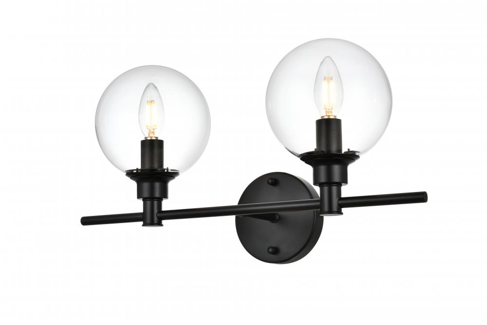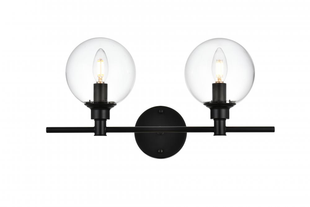 Jaelynn 2 light Black and Clear Bath Sconce