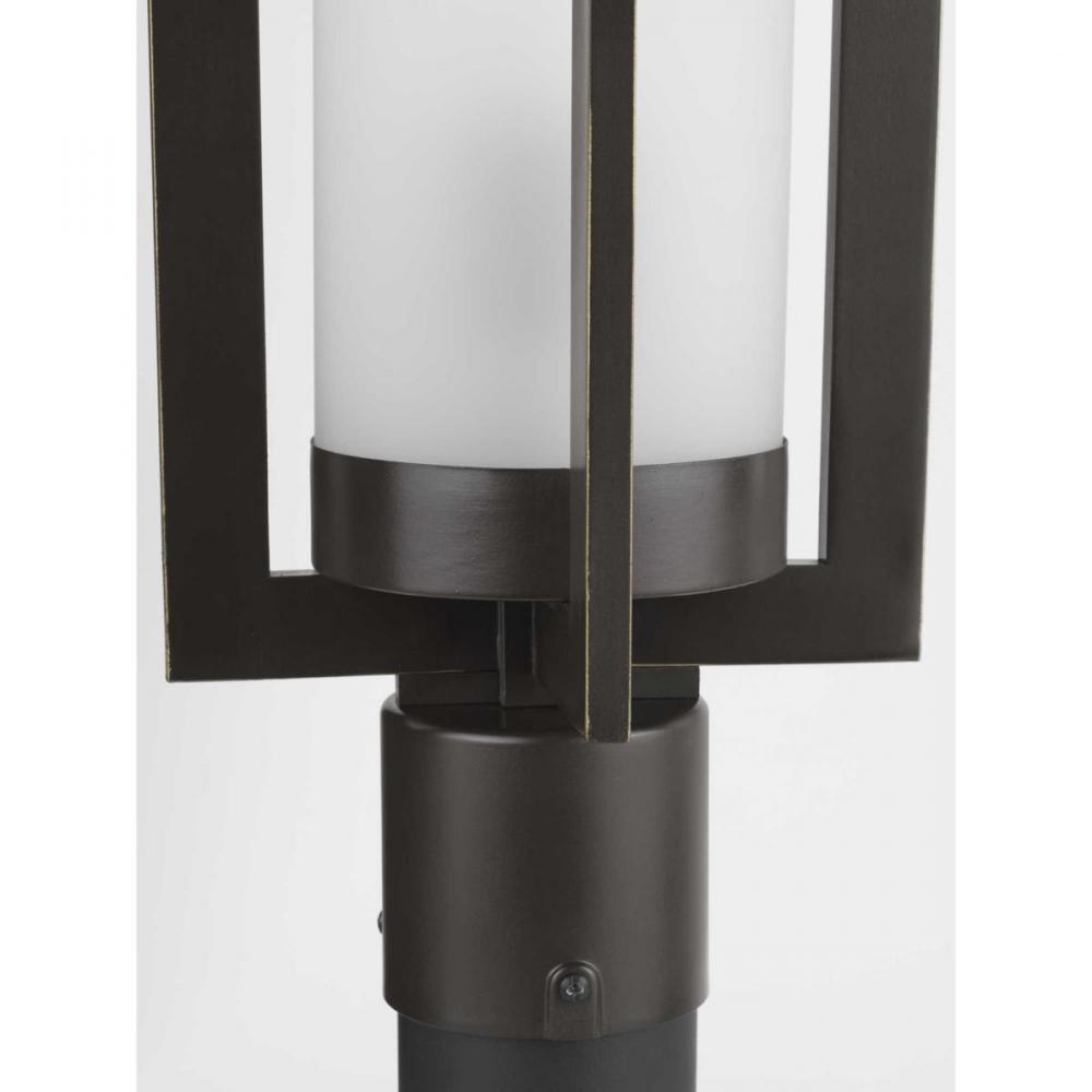 Create a home full of modern elegance with this contemporary post lantern. A sleek elongated frame with a rectangular form manifests an architectural design intended to add a modern glow while commanding visual interest. The light fixture features a gorgeous etched glass diffuser ready to emit a beautiful glow.