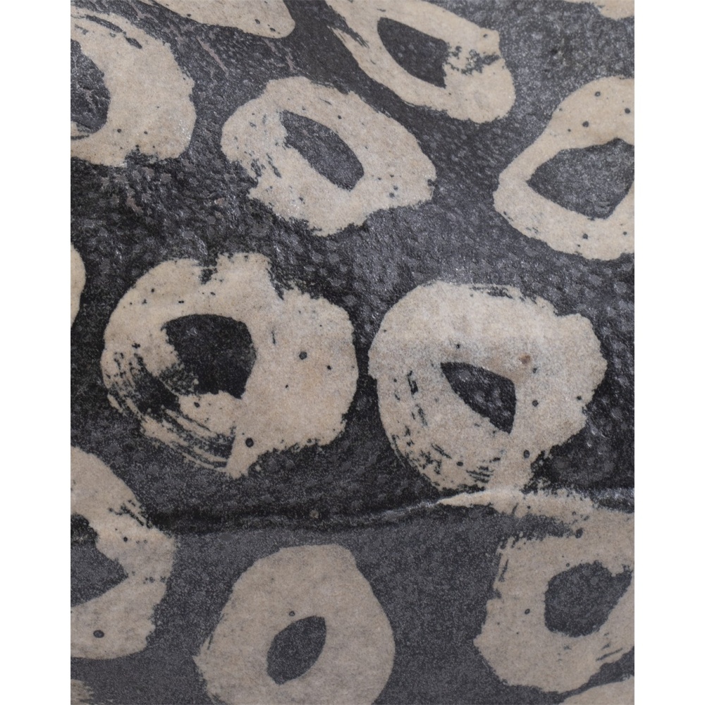 The Japonesque Bowl is poetry in motion, and not just because its asymmetrical form creates a sense of movement but because the swirling brushstrokes along its porcelain surface do as well. The black vessel is created by a studio artist and, because it is handmade, each one will vary slightly to make each piece unique — some will be darker and, because the brush patterns are hand-painted, they will be random from piece to piece.