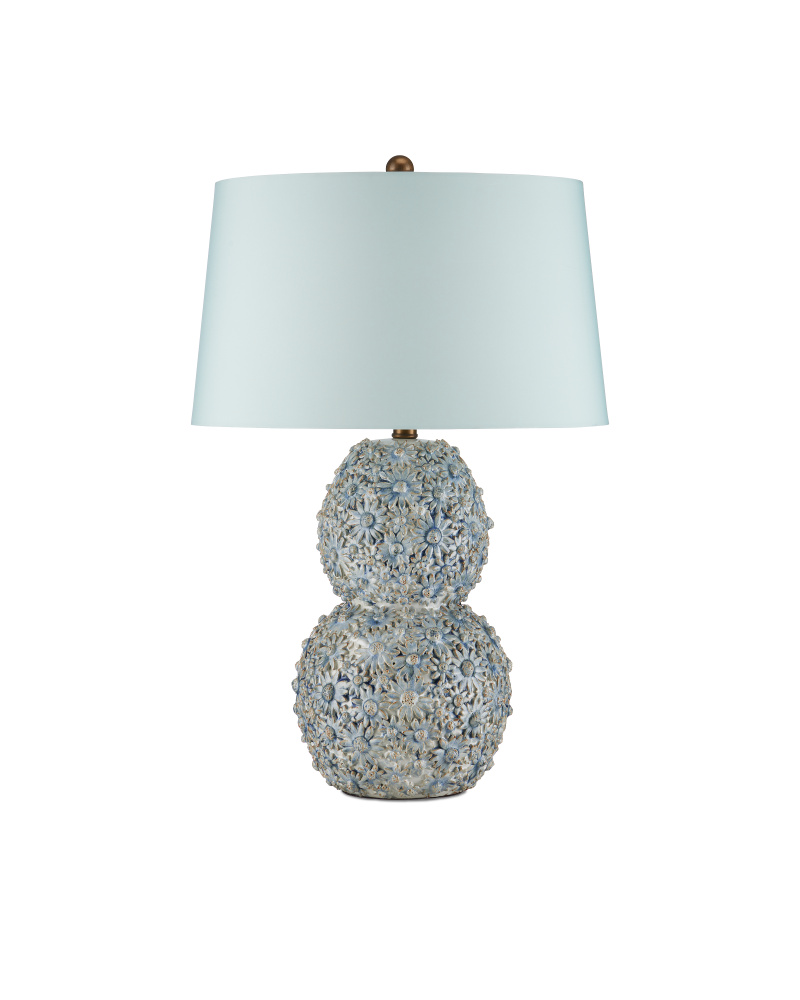 The Jessamine Blue Table Lamp has a surface studded with beautifully fashioned flowers. Rather than apply one type of bloom, a number of floral shapes are intermingled to give the pale blue lamp a charm that is heightened by the top edge that is slightly rounded as it approaches the shade. The handmade character of the piece comes from the fact that each flower is created individually and applied, one-by-one, by hand by community of talented women artisans who live at the border of Burma and Thailand.