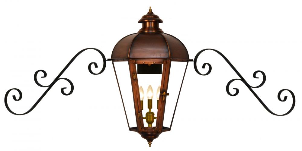 Size 63 Electric Copper Lantern, 3 candelabra base sockets, with Duel Scroll Moustache