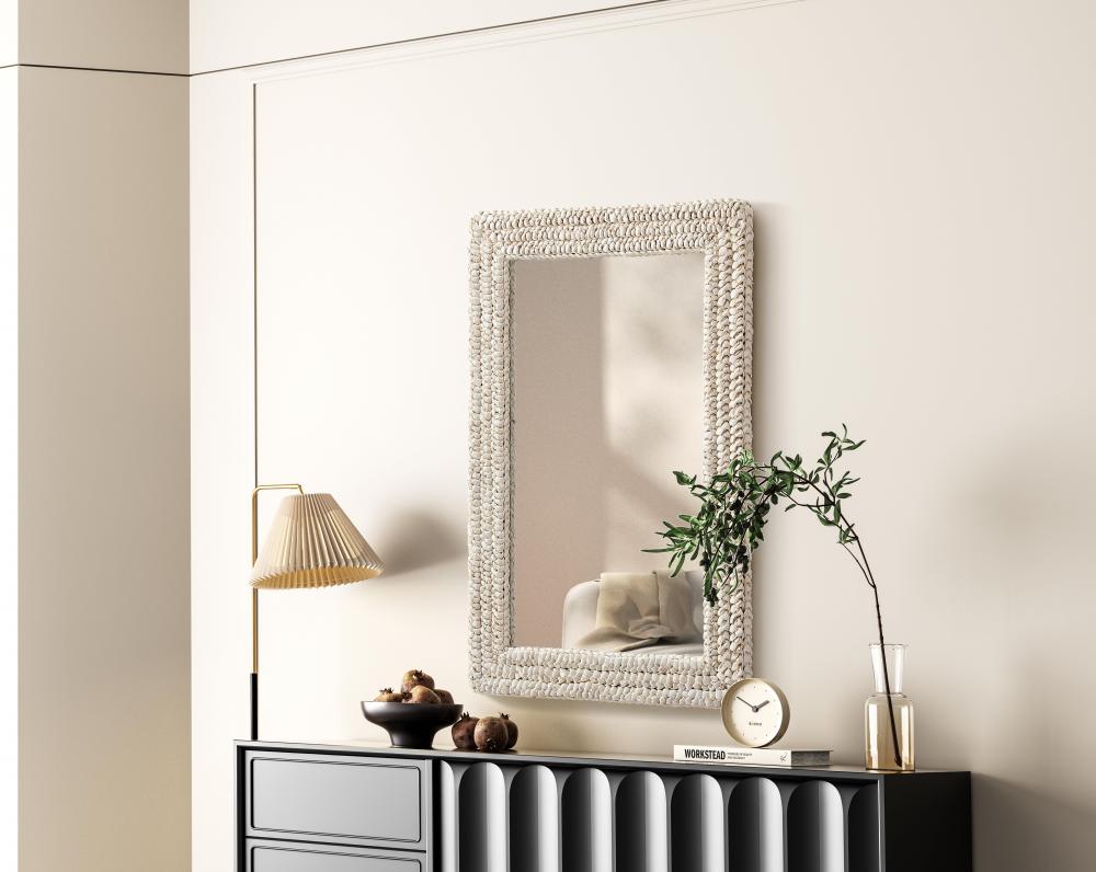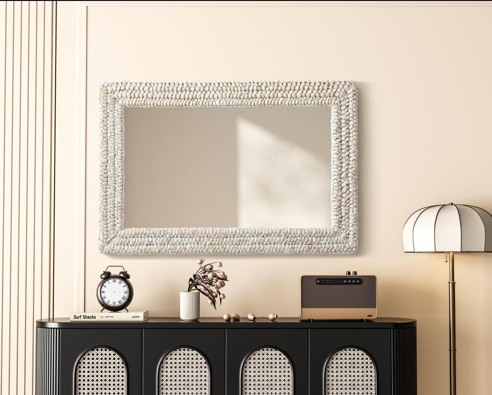 Transform your space with this stunning wall mirror that blends natural charm with functional design. Crafted from MDF, cornhusk, and high-quality mirror, the textured woven frame brings warmth and character to your decor. Whether you're decorating a hallway, living room, or bedroom, this mirror comes in a variety of shapes—including rectangle, round, oval, and arch—along with multiple size options to perfectly suit your needs. Designed for versatility, the mirror features four inset metal hangers, allowing you to mount it either vertically or horizontally with ease. Its reflective surface not only adds a touch of brightness but also creates the illusion of a larger room, enhancing your space. with durable materials and ready-to-hang hardware, this mirror is as practical as it is stylish, making it a must-have piece for any home.