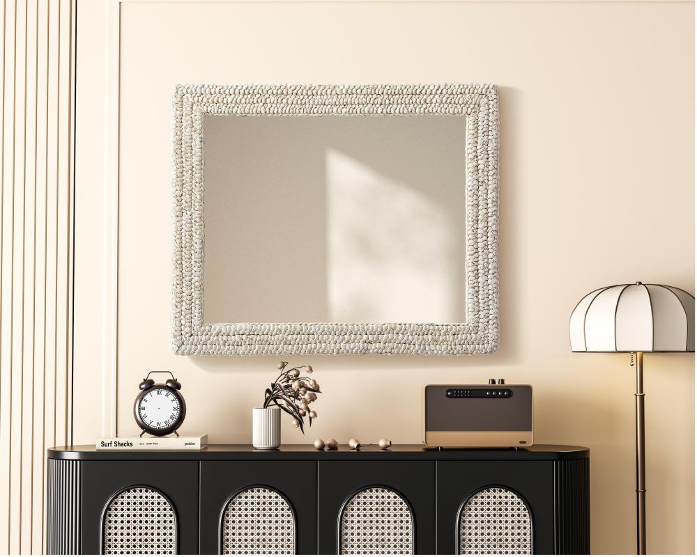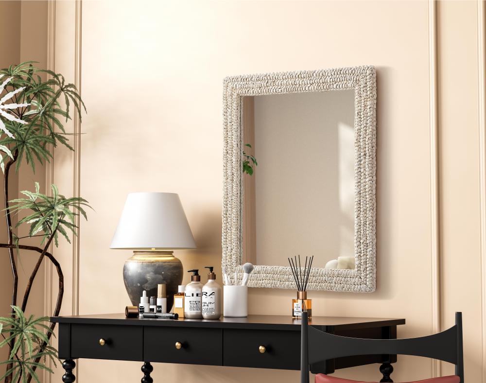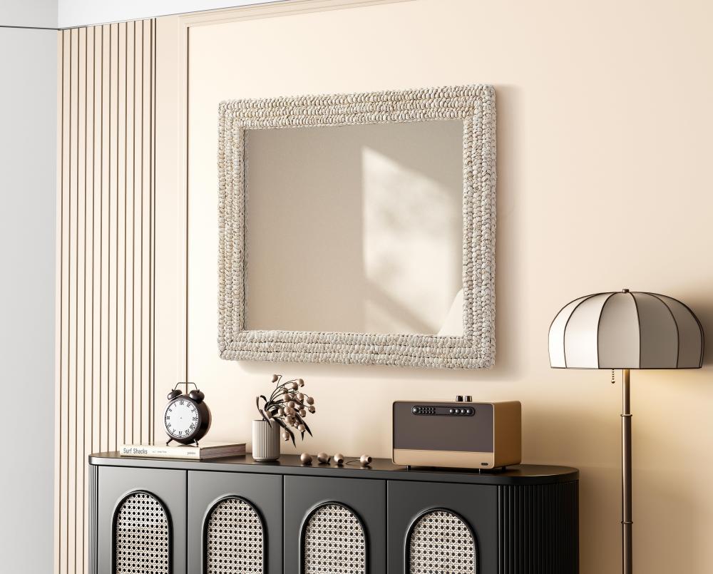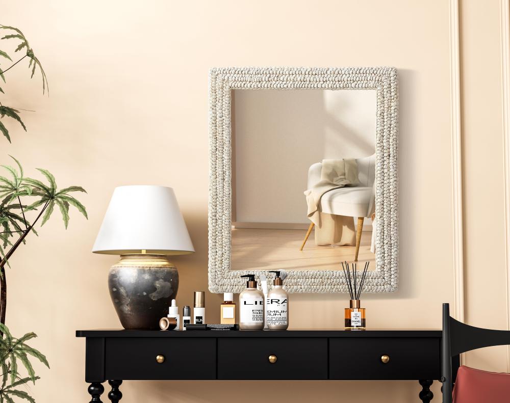 Transform your space with this stunning wall mirror that blends natural charm with functional design. Crafted from MDF, cornhusk, and high-quality mirror, the textured woven frame brings warmth and character to your decor. Whether you're decorating a hallway, living room, or bedroom, this mirror comes in a variety of shapes—including rectangle, round, oval, and arch—along with multiple size options to perfectly suit your needs. Designed for versatility, the mirror features four inset metal hangers, allowing you to mount it either vertically or horizontally with ease. Its reflective surface not only adds a touch of brightness but also creates the illusion of a larger room, enhancing your space. with durable materials and ready-to-hang hardware, this mirror is as practical as it is stylish, making it a must-have piece for any home.