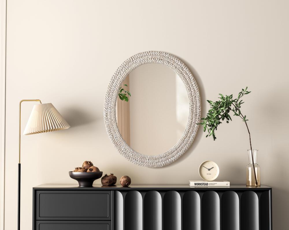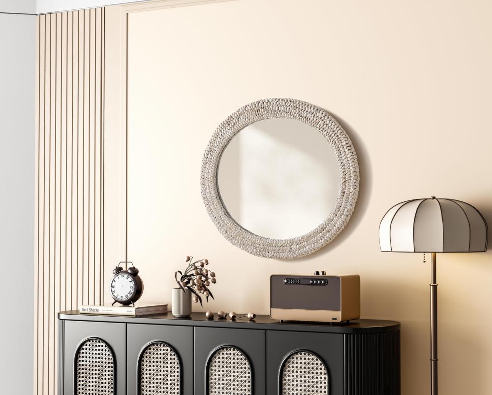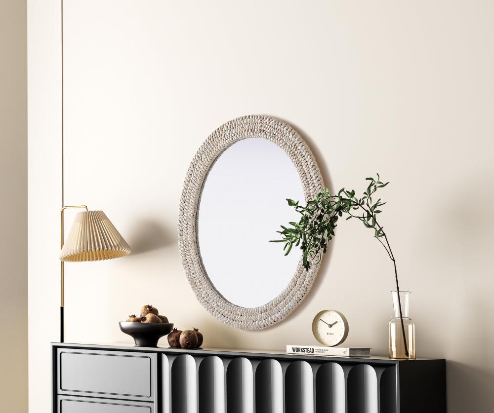 Transform your space with this stunning wall mirror that blends natural charm with functional design. Crafted from MDF, cornhusk, and high-quality mirror, the textured woven frame brings warmth and character to your decor. Whether you're decorating a hallway, living room, or bedroom, this mirror comes in a variety of shapes—including rectangle, round, oval, and arch—along with multiple size options to perfectly suit your needs. Designed for versatility, the mirror features three inset metal hangers, allowing you to mount it either vertically or horizontally with ease. Its reflective surface not only adds a touch of brightness but also creates the illusion of a larger room, enhancing your space. with durable materials and ready-to-hang hardware, this mirror is as practical as it is stylish, making it a must-have piece for any home.