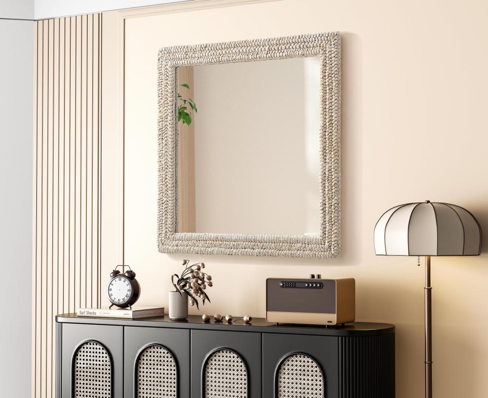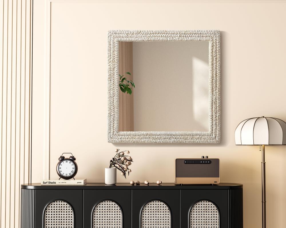 Transform your space with this stunning wall mirror that blends natural charm with functional design. Crafted from MDF, cornhusk, and high-quality mirror, the textured woven frame brings warmth and character to your decor. Whether you're decorating a hallway, living room, or bedroom, this mirror comes in a variety of shapes—including rectangle, round, oval, and arch—along with multiple size options to perfectly suit your needs. Designed for versatility, the mirror features four inset metal hangers, allowing you to mount it either vertically or horizontally with ease. Its reflective surface not only adds a touch of brightness but also creates the illusion of a larger room, enhancing your space. with durable materials and ready-to-hang hardware, this mirror is as practical as it is stylish, making it a must-have piece for any home.