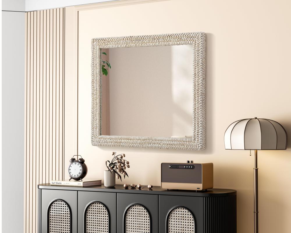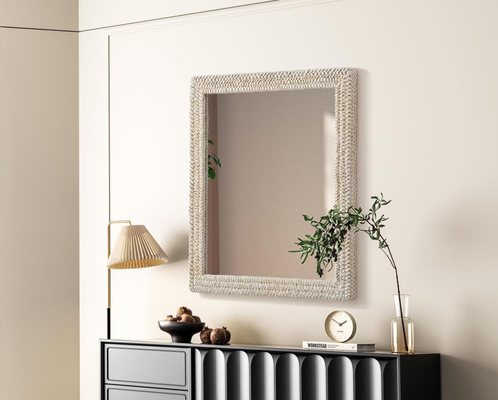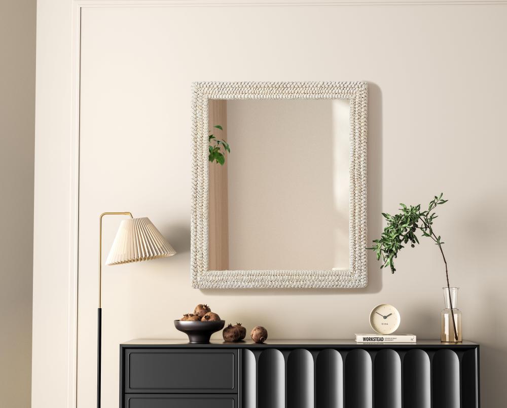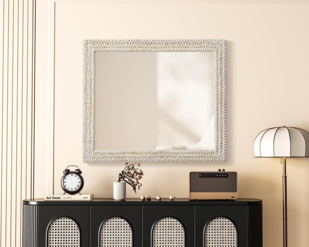 Transform your space with this stunning wall mirror that blends natural charm with functional design. Crafted from MDF, cornhusk, and high-quality mirror, the textured woven frame brings warmth and character to your decor. Whether you're decorating a hallway, living room, or bedroom, this mirror comes in a variety of shapes—including rectangle, round, oval, and arch—along with multiple size options to perfectly suit your needs. Designed for versatility, the mirror features four inset metal hangers, allowing you to mount it either vertically or horizontally with ease. Its reflective surface not only adds a touch of brightness but also creates the illusion of a larger room, enhancing your space. with durable materials and ready-to-hang hardware, this mirror is as practical as it is stylish, making it a must-have piece for any home.