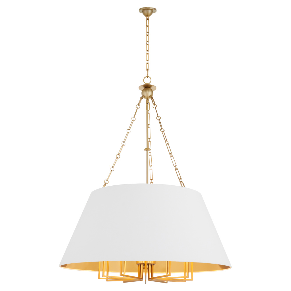 Karnes from Tamara Day for Quorum brings timeless elegance to any space. Featuring classic pendant silhouettes, each design showcases a white linen shade with a gold interior lining that enhances the warm, inviting glow. Finished in aged brass, Karnes complements a variety of aesthetics and offers a range of sizes to suit any space.